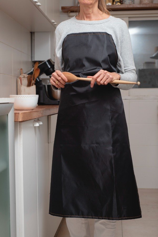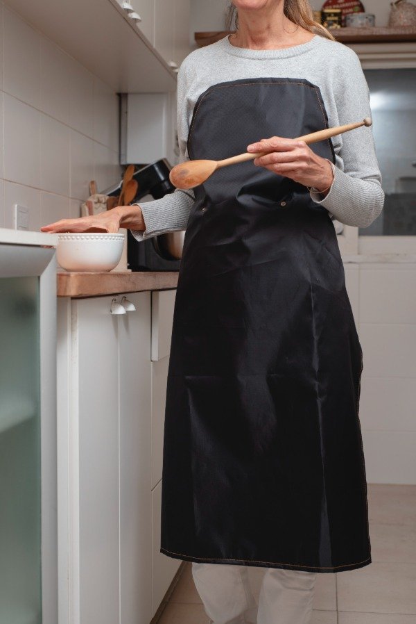 Los delantales de esta tela vienen en color negro y/o variedad de colores por pedido.