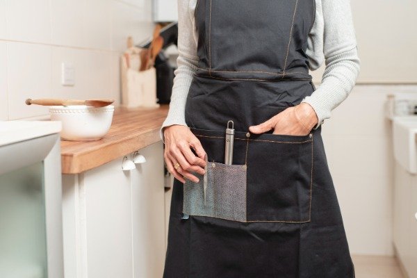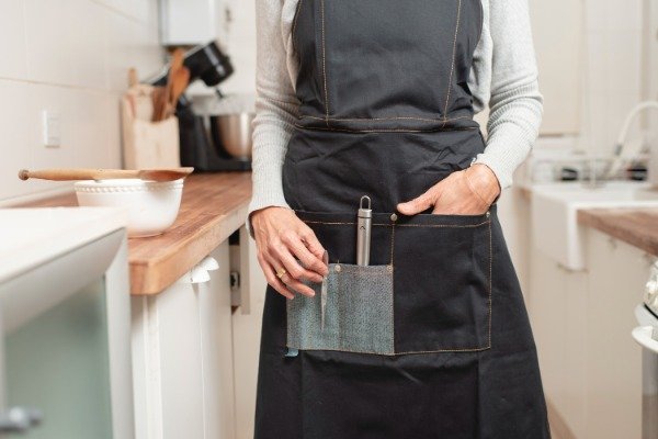 Tiene detalles de pespuntes en color tostado, y tira lateral sujeta repasafor.
